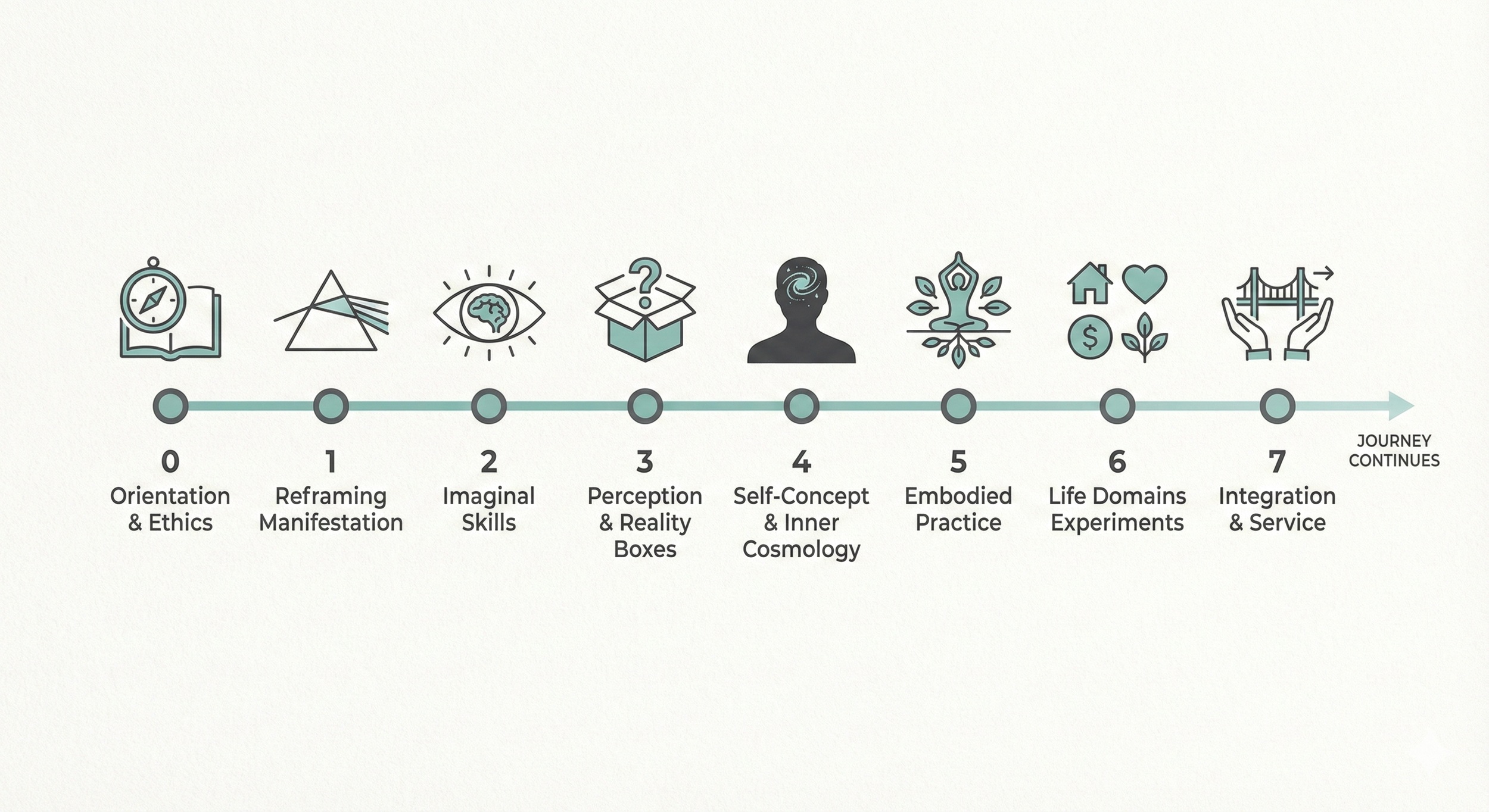 This course treats manifestation as a practical skill, guiding you to engage with your inner state, assumptions, and focus so that your outer life can realign accordingly. Progress through each module at your own pace, conduct the experiments, and use your real life as the testing ground for what you learn here.